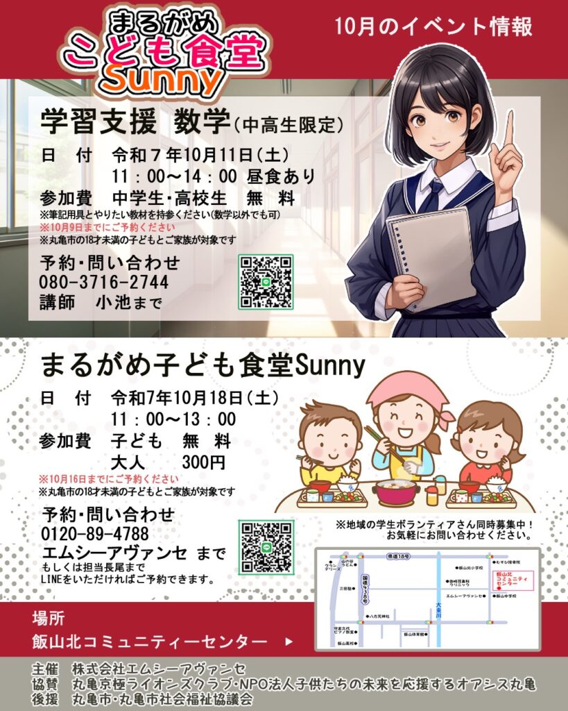 飯山北コミュニティセンターにて、こども食堂Sunny開催します。前回に引き続き今回もたくさんのご参加をお待ちしております^ ^